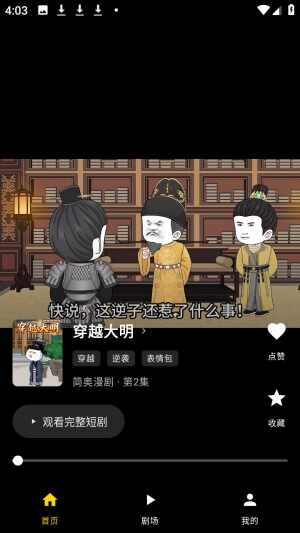 1、进入软件首页会自动推荐一个热(re)门(men)漫剧作品。