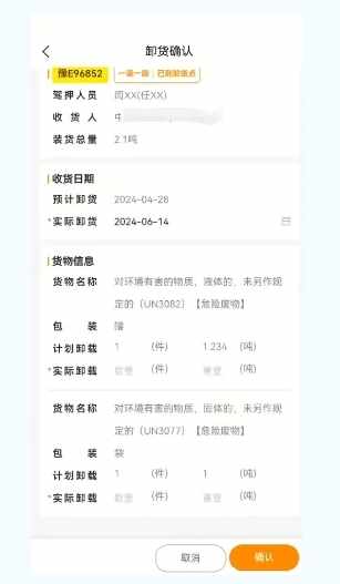 企业驾押人员到达卸货点后开始卸货,进行状态变更,点击【卸货】。在将所有物品卸货Finish后,进行状态变更,点击【卸货Finish】。