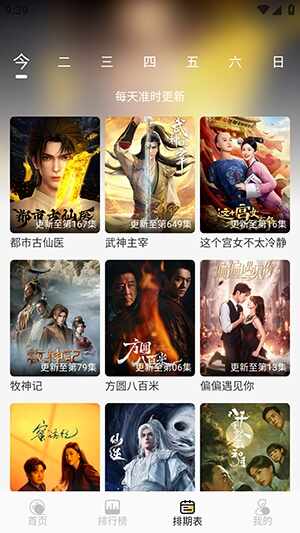 3、同时软件(jian)提供(supply)排期表功能,可以查看今日更新影片。