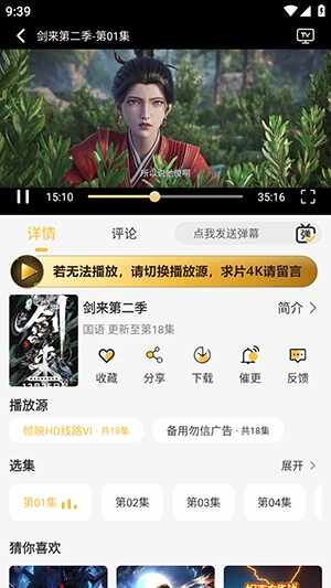 2、播放器内置基础交互功能,如选集、倍速播放、画面比例调整及投屏支持,适配多种场景使用,增(zeng)强使用的灵活性。