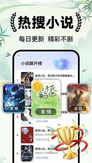 4、每日热门精准推荐:依托你阅读偏好智能推送优质小说,结合每日热门榜单,新鲜好书尽收眼底,让你轻松找到下一本心仪之作。