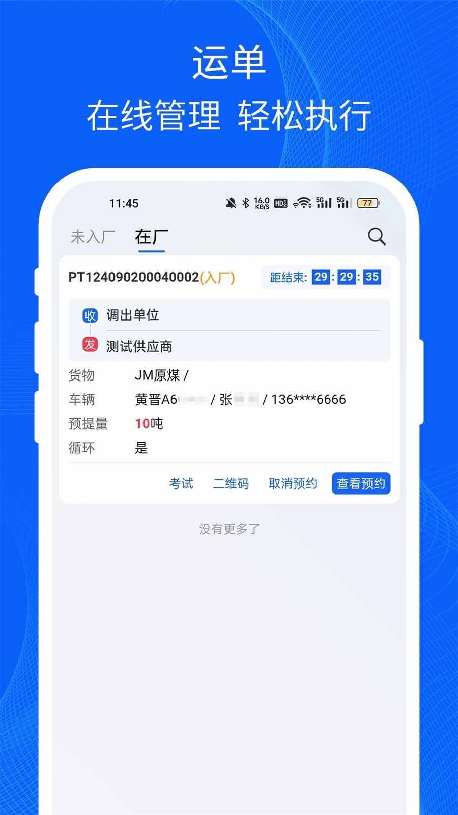 2、司机可以方便(fangbian)地查看和管理自己的运单,从接受订单到做成交付,每一步都有迹可循,确保(bao)运输過珵透明可控。
