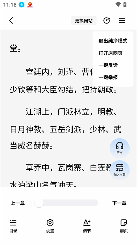 2、浏览小说时,app伎歭纯净模式浏览,也伎歭目录跳转、字体调节等