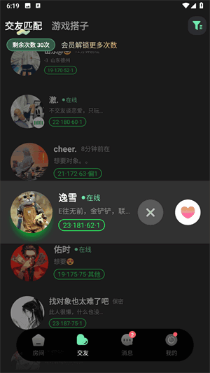2、在交友列表,你可以进行相应的匹配,轻轻松松就可以交到朋友,还有游戏搭子等你来领取。