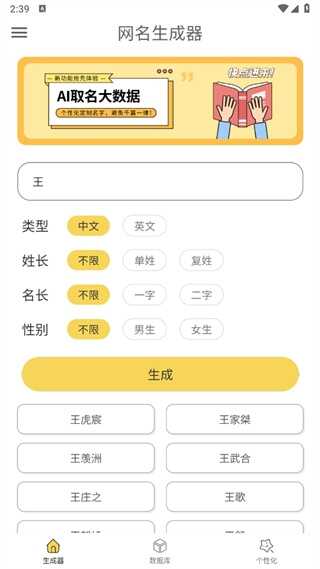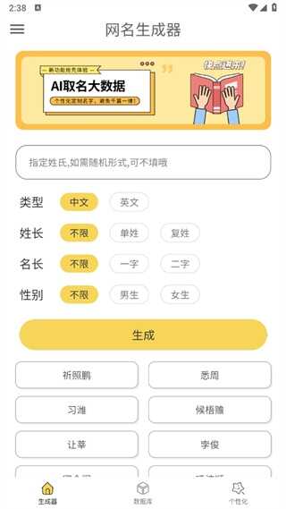 4、让特殊网名生成器用户们注册账号时再也不用为取名烦恼。