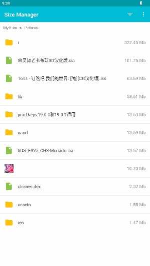 3、进入到软件后,可以看到文件从大到小排列。