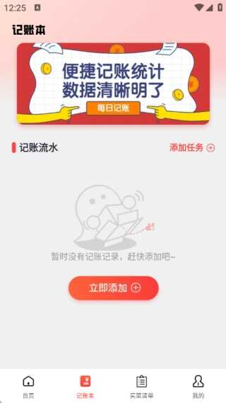 3、在记账本页面中可以添加任务,然后输入相關的信息进行快速记账。