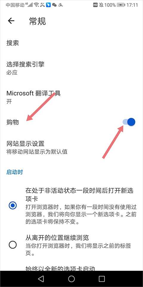 虽然微软浏览器手机版不能随便让用户安装插件,但是用户可以开启其内置的扩展插件,例如下面是两个内置扩展插件的开启方式