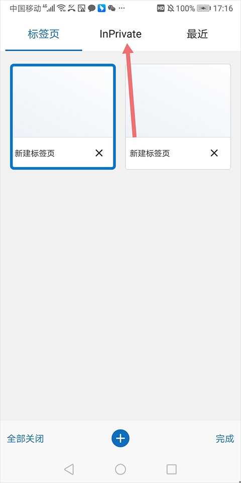 2、然后在打开新页面中将页面切换至【InPrivate】处(InPrivate翻译为:隐私保护)