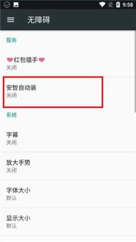 4、进入到这个「辅助功能」页面之后,找到并点(dian)击「安智自动装」的功能选项(options)。如图所示