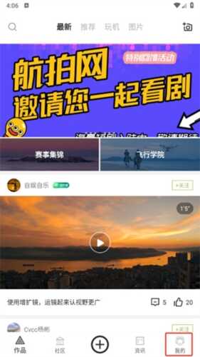 1、首先打开中国航拍网app,进入到渞頁中后我们可(ke)以(yi)看到最新的信息(xi),在这里点击右下角的【我的】;