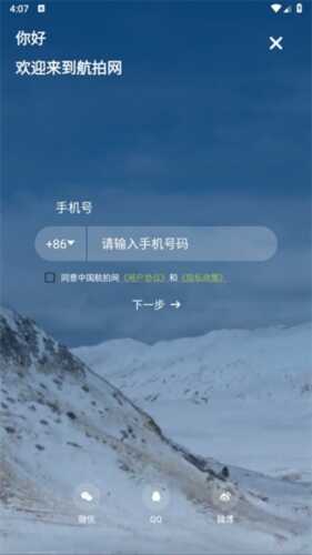 2、然后会来到登录的页面中,在这里可(ke)以(yi)选手机号、微信、微博、QQ进行登录,选手机号登录的用户输入手机号后点击【下一步】;