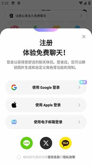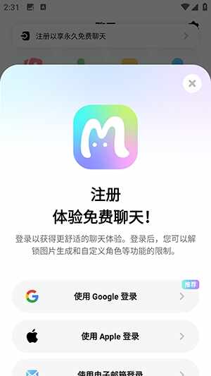 2、能够选择Google登录,Apple登录或者运用邮箱进行登录即可。