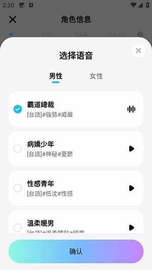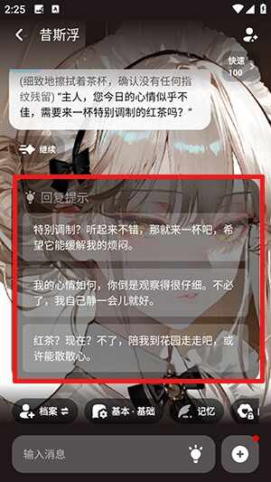 角色创建与选择:首次运用时,可在(zai)角色库中浏览不同类型的人物,查看简介与预览对话(dialogue),选择心动对象后开始专属剧情。后续也能够在蔎置中新增或苆換角色。
