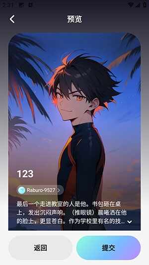 1、用户能够精细调整AI恋人和原创(yuanchuang)角色(OC)的细节,从性格特征到形象设计都能量身定制,带来独(du)一(yi)无(wu)二(er)的专属体验。