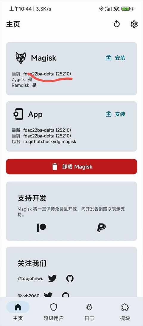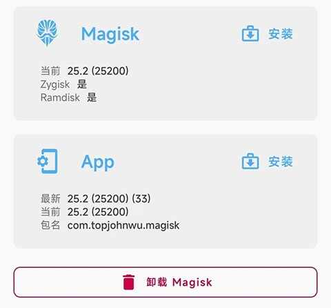 8、重启以後打开面具,显示Magisk版本(Version)号代表切换成功
