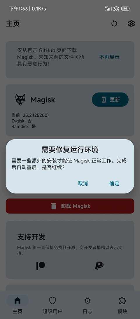 7、如果您已经安装了Magisk,强烈建议直接通过Magisk Manager进行更新(renew)。