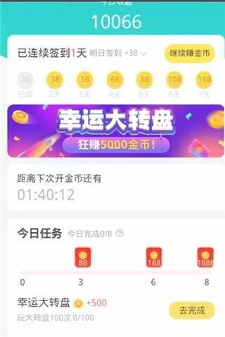 5、激活(jihuo)和启用完毕后,进入到应用程序的首页,在页面(yemian)上can通过连续签到、完成今日任务获得金币,
