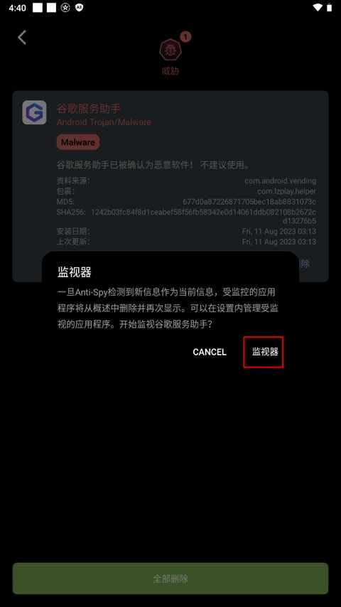 +检测 Android TV上的可疑间谍软件和恶意软件