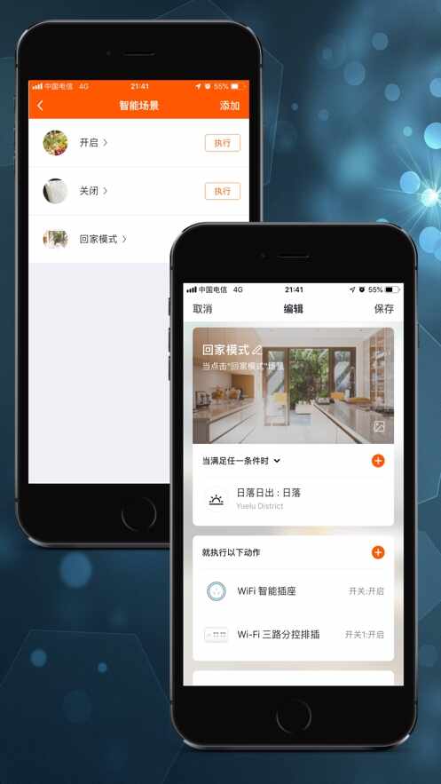 5.一键就(jiu)可以开启、关闭多个智能设备,免去了许多繁琐的开关操作;