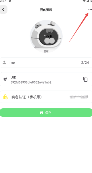 3、然后点击(click)右上角的三个点点,呼出功能(Function)菜单,选择删除账号;