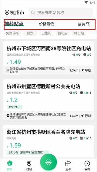 2、如果不知道哪里有站点,那么可以根据条件开始筛选,例如价格最低、距离最近等等;