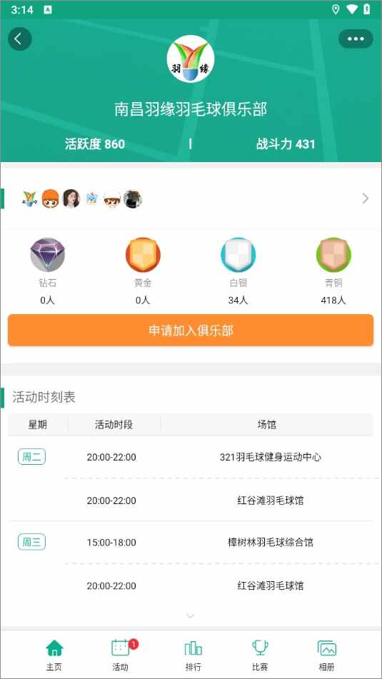 1、通过中羽联个人中心的俱乐部选项(xuanxiang)进入我的俱乐部主页,点击申请加入,会长通过之后即可加入。