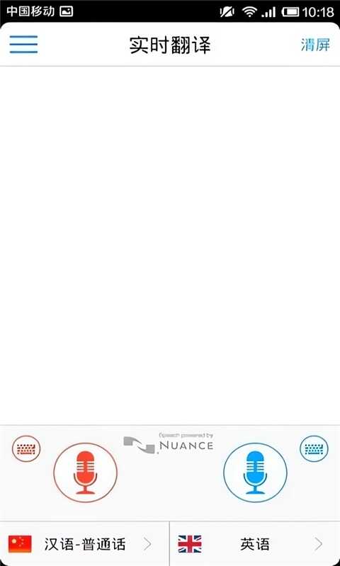 2、进入(Enter)首页(ye)后,是一个很简单的页(ye)面(mian),下面两个麦,上面(above)就是记录屏,麦下方能選擇你使用什么语言,右边是翻译的语言,其实这两个功能有点重复。
