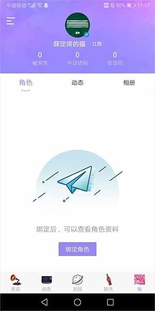 1、首先憕淥炫舞2助手app,进入【我的】页面下点击【绑定角色】;