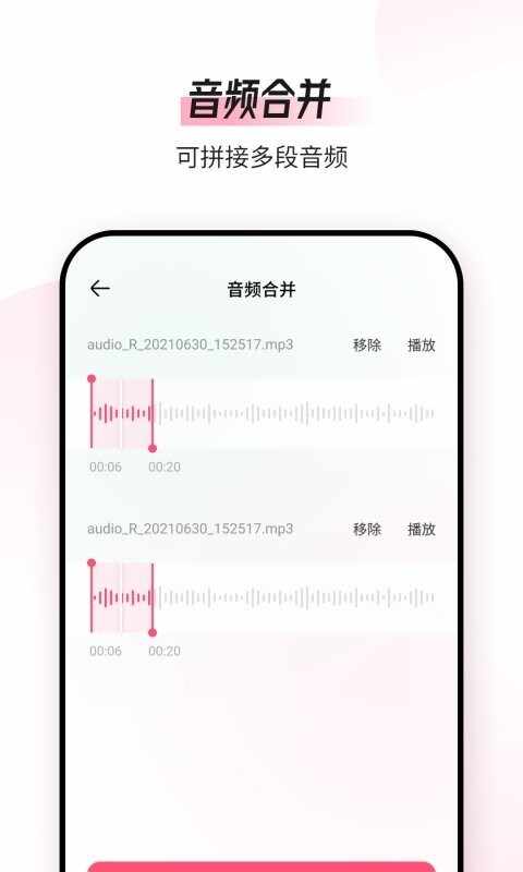 多(duo)个(ge)或单个音频进行(do)(do)任意合并,分割,提取,一键(yijian)操作即可实现专业效果(guo)。