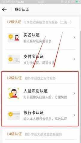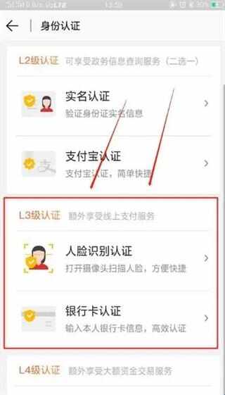 3、接着在“L3级认证”服务栏下,根据个(ge)人(ren)需要选择认证方式,下面以“人脸识别认证”为例。