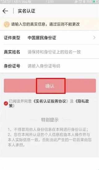 5、按照(zhao)提示完善证件、姓名、身份证号等信息,点击“确认”;接着按照(zhao)提示进行人脸识别即可(jike)。