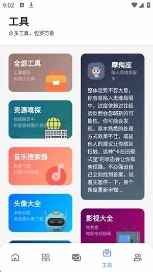 4、点击(ji)工具板块,可查(cha)看众多实(shi)用(yong)小工具,点击(ji)工具可使用对应功能。