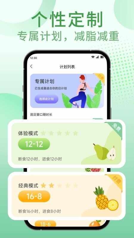 根据你的身高、体重、年龄、性别等信息,为你推荐合适的轻断食模式,如16:8、18:6、20:4等,让你在规定的时间内完成饮食,实现(xian)热量平衡。