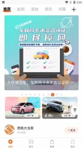 1、首先下(xia)载(zai)安装并打开(dakai)软件,在发现板块有在线粢卂、交流社区、福利活动,用(yong)户(hu)问答等功能,在这里可以学习用车知识和其他用(yong)户(hu)交流;