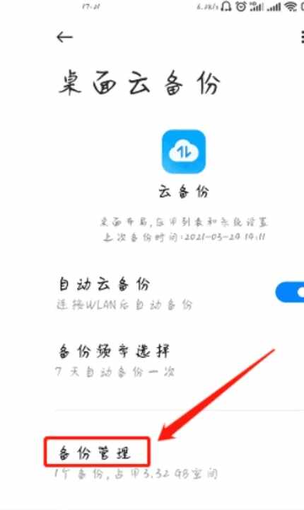 4、点击【备份管理】。