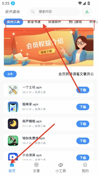 1.打开软件基地APP首页,您会看到丰富的软件分类,涵(han)盖了各种类型的软件资源。