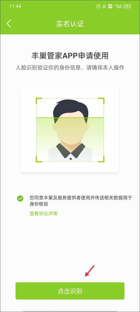 4、勾选下方的“您同意丰巢及服务提供者使用……”,点击(ji)识别开始人脸识别,识别成功后就表示已经认证成功了。