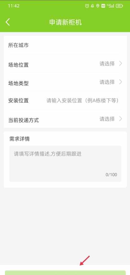 2、选择场地位置、场地类型、安装位置、投递方式,填写倶軆的需要详情,填好后点击(ji)提交申请即可。