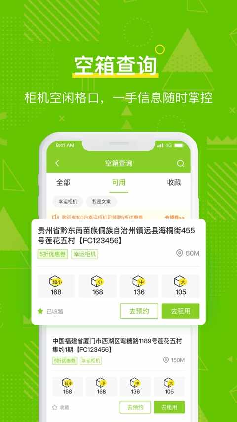 5.查找(zhao)附近柜机、并能查看该柜机的剩余格口。