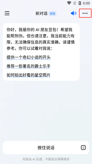 4、在新对话页面点击右上方三个点