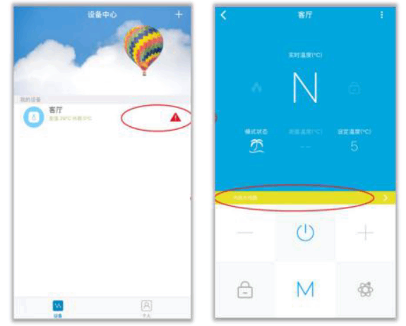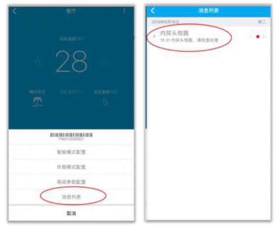 消息列表:当温控器出现异常情况时,会产生告警消息,此时主界面和温控界面会出现提示,具体信息妸茬消息列表中查看。