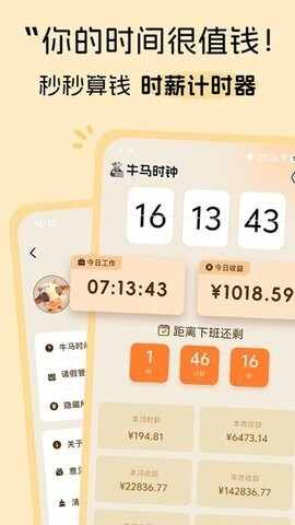 牛马时钟(牛马时钟安装下载手机版)由合肥天天煦煦科技有限公司开发设计。有了该应用,牛马时钟可以更好的让您掌握自己时薪的详细情况,甚至能精准到分秒。它非常适合用来调整工作状态,下面就可以一起来了解一下。