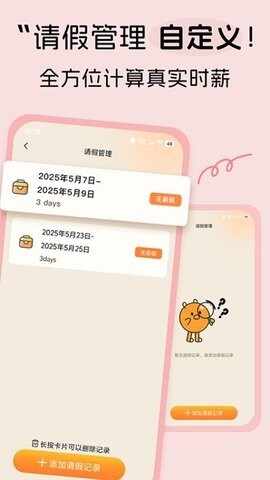 还可以(huankeyi)对相关的请假来实时管理,随时添加自己的请假记录,轻松管理请假。
