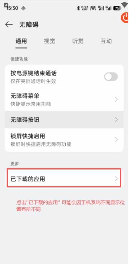 3、在无障碍页面打开"已下载的应用",音手机系统不同显示的位置(zhi)有所不同。