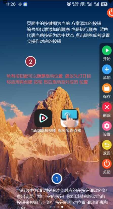 10、最后页面中的按键即为当前方案添加的按钮,编号即代表添加的顺序也是执行顺序,蓝色代表当前按钮为选中状态点击删除或者设置(set up)会操作对(dui)应的按钮,完成后即可开启点击操作。