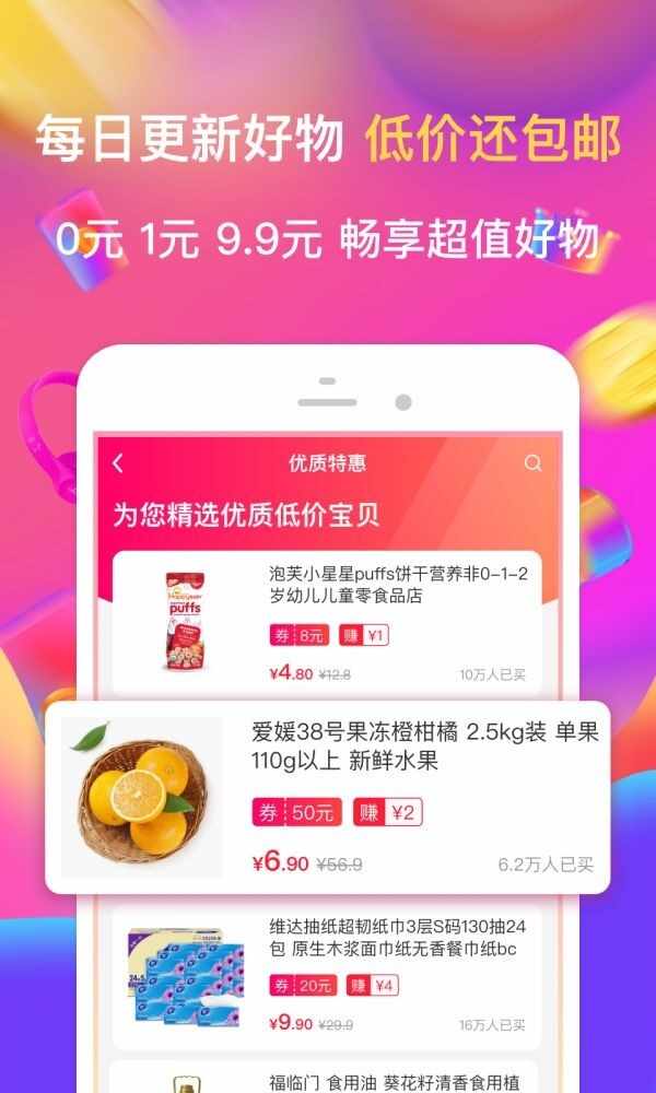 3、一款购(gou)物(wu)软(ruan)件(jian),这款软(ruan)件(jian)can让(rang)你(ni)以最低的价(jia)格买到更加实惠的商品,这里每天(meitian)都会为你呈现各种高折扣的商品