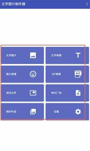1、在本站下载安装文字图片制作器手机版,运(yun)行(xing)软件,可以看到有文字图片、文字表情、图片表情、GIF表情、滚动文字等;