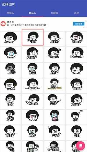 2、这里小编选择图片表情来制作表情包,点开图片表情,选择蘑菇头的表情原图素材;