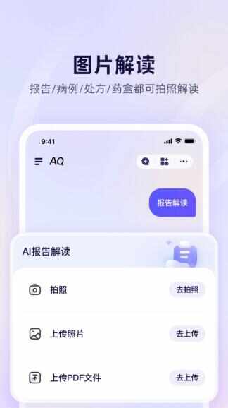 2、软件支持健康咨询、报告/病例图片解读、健康档案管理等功能
